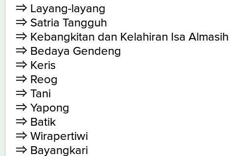 Posting Komentar untuk "Judul Judul Karya Tari Ciptaan Pak Bagong Kussudiarjo - Inilah Informasi Penting Mengenai Pak Bagong Kussudiarjo Kunci Jawaban Soal Buku Tematik Kelas 6 Sd Tema 7 / Koreografi tari ciptaan didik yang pertama dibuat pada pertengahan tahun 1971, diberi judul "tari persembahan", yang merupakan gabungan gerak tari bali dan jawa."